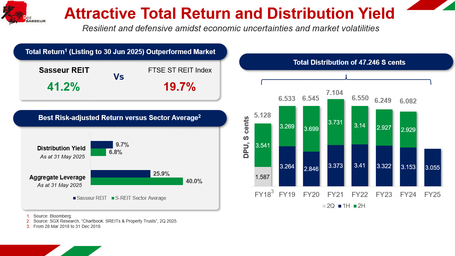 Attractive Metrics: Sasseur REIT currently offers an attractive dividend yield of approximately 8.9% and maintains a low gearing ratio of 25.8%.